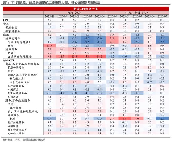 不过细究下来,11月通胀数据存在明显的统计“噪音”。一方面,政府停摆严重影响了劳工部的数据搜集工作,导致10月通胀以及11月通胀环比数据缺失,市场可用于解读的有效信息较为有限;另一方面,鉴于美国政府于11月中旬才恢复正常运转,而11月物价调查的统计区间仅能覆盖当月下旬,恰逢感恩节等节假日促销季,价格波动的季节性扰动因素可能导致统计结果出现一定程度的失真。